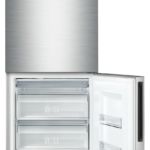 без No Frost, электронное управление, класс A+, полезный объём: 364 л (205 + 159 л), 59.5x62.9x206.8 см, нержавеющая сталь