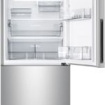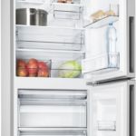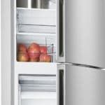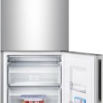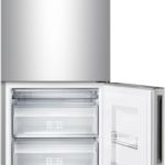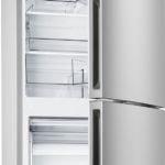 без No Frost, электронное управление, класс A+, полезный объём: 364 л (205 + 159 л), зона свежести, 59.5x62.9x206.8 см, серебристый