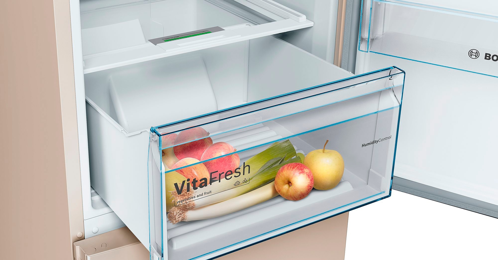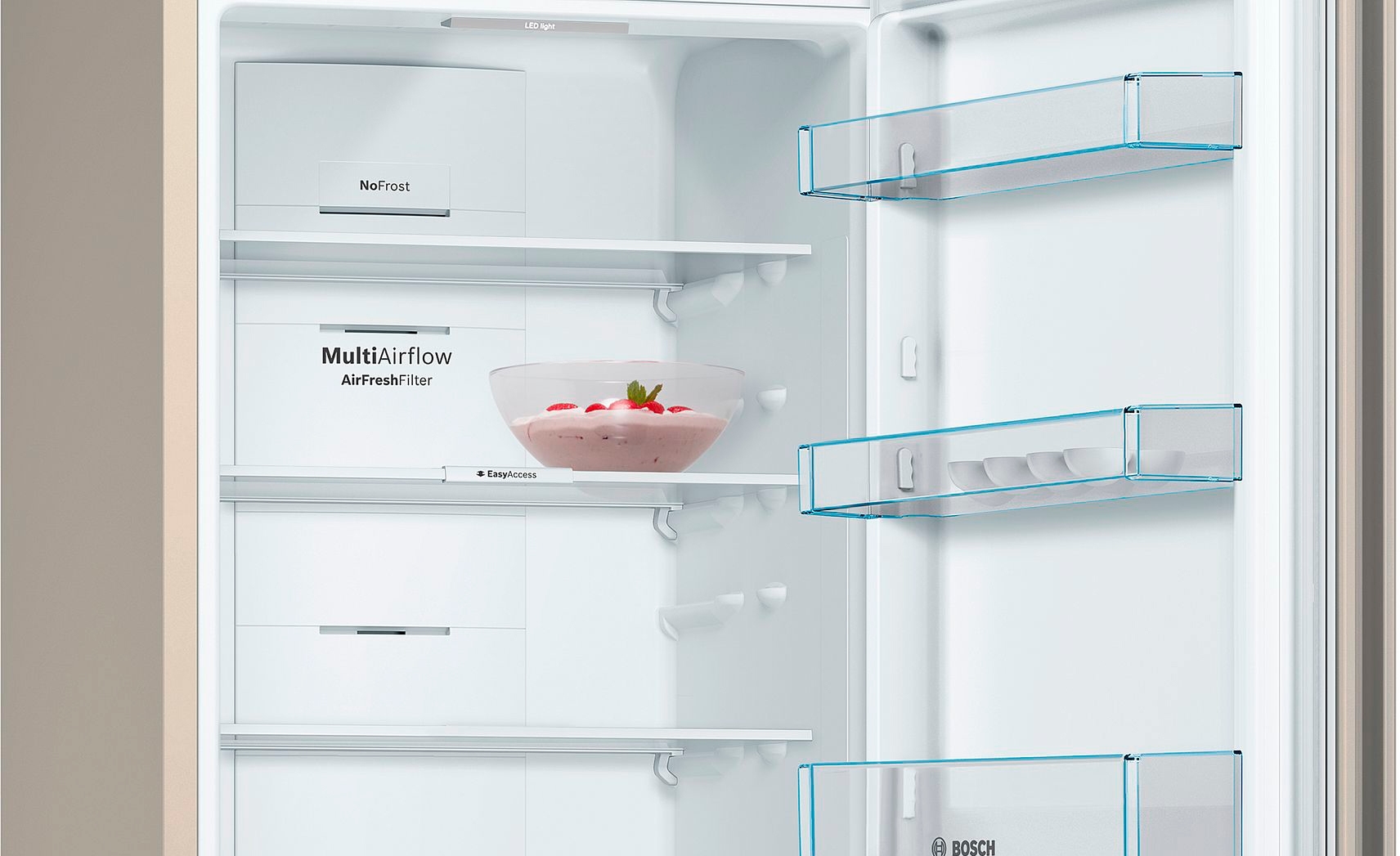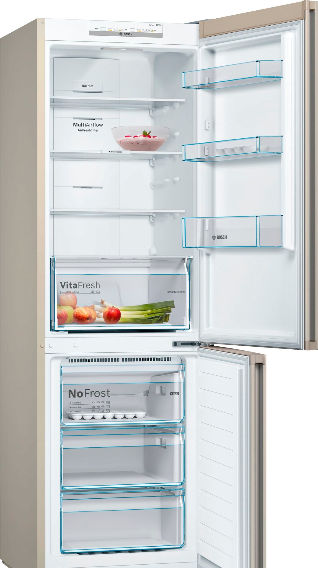 полный No Frost, электронное управление, класс A+, полезный объём: 324 л (237 + 87 л), зона свежести, 60x66x186 см, бежевый