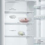 отдельностоящий, полный No Frost, электронное управление, класс A++, полезный объём: 384 л (233 + 107 л), инверторный компрессор, зона свежести, перенавешиваемые двери, складная полка, полка для вина, лоток для яиц, 59.5x68.2x203 см, серебристый