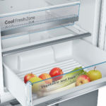 полный No Frost, электронное управление, класс A, полезный объём: 315 л (221 + 94 л), зона свежести, 60x65x200 см, нержавеющая сталь