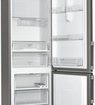 отдельностоящий, без No Frost, электронное управление, класс A+, полезный объём: 324 л (205 + 119 л), зона свежести, перенавешиваемые двери, полка для вина, лоток для яиц, 59.5x62.9x186.8 см, темная сталь