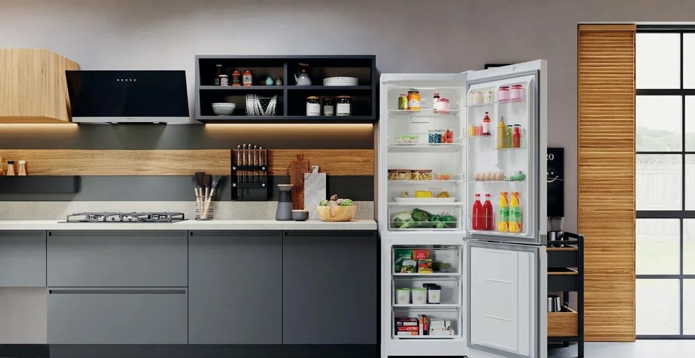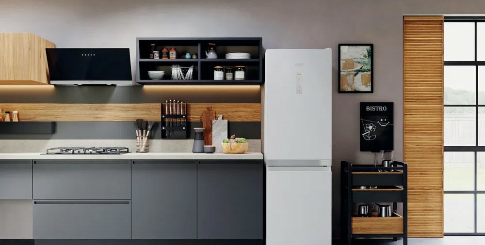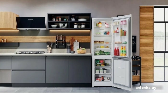 отдельностоящий, без No Frost, электронное управление, класс A+, полезный объём: 324 л (205 + 119 л), зона свежести, перенавешиваемые двери, полка для вина, лоток для яиц, 59.5x62.9x186.8 см, темная сталь