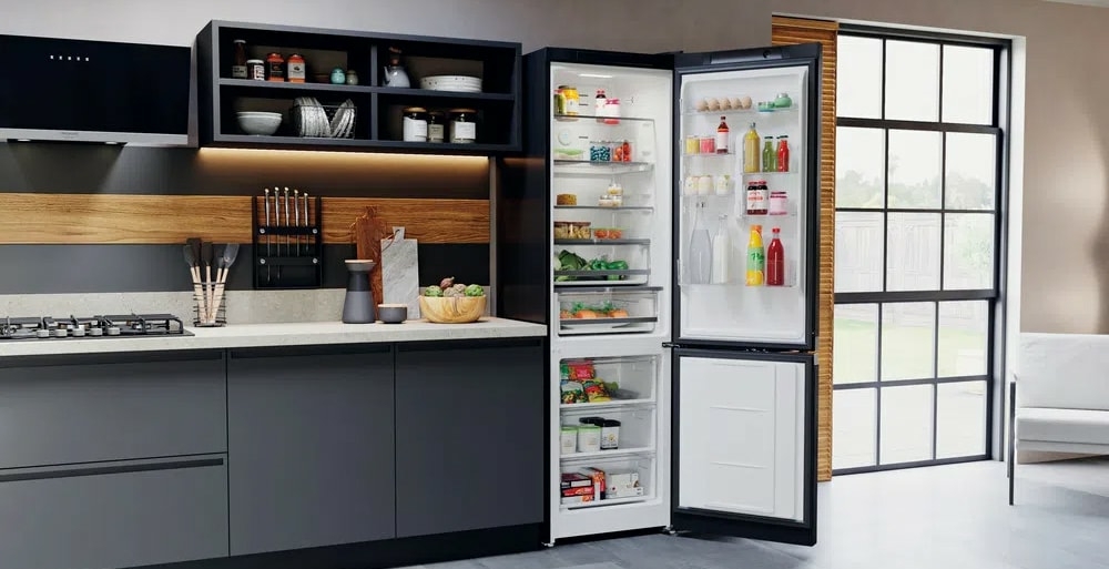 отдельностоящий, без No Frost, электронное управление, класс A+, полезный объём: 324 л (205 + 119 л), зона свежести, перенавешиваемые двери, полка для вина, лоток для яиц, 59.5x62.9x186.8 см, темная сталь