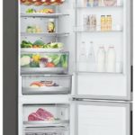 отдельностоящий, без No Frost, электронное управление, класс A+, полезный объём: 324 л (205 + 119 л), зона свежести, перенавешиваемые двери, полка для вина, лоток для яиц, 59.5x62.9x186.8 см, темная сталь