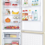 отдельностоящий, полный No Frost, электронное управление, класс A, полезный объём: 346 л (248 + 98 л), перенавешиваемые двери, полка для вина, лоток для яиц, 59.5x67.6x194 см, бежевый