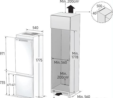 полный No Frost, электронное управление, класс A++, полезный объём: 267 л (195 + 72 л), 54x55x177.5 см