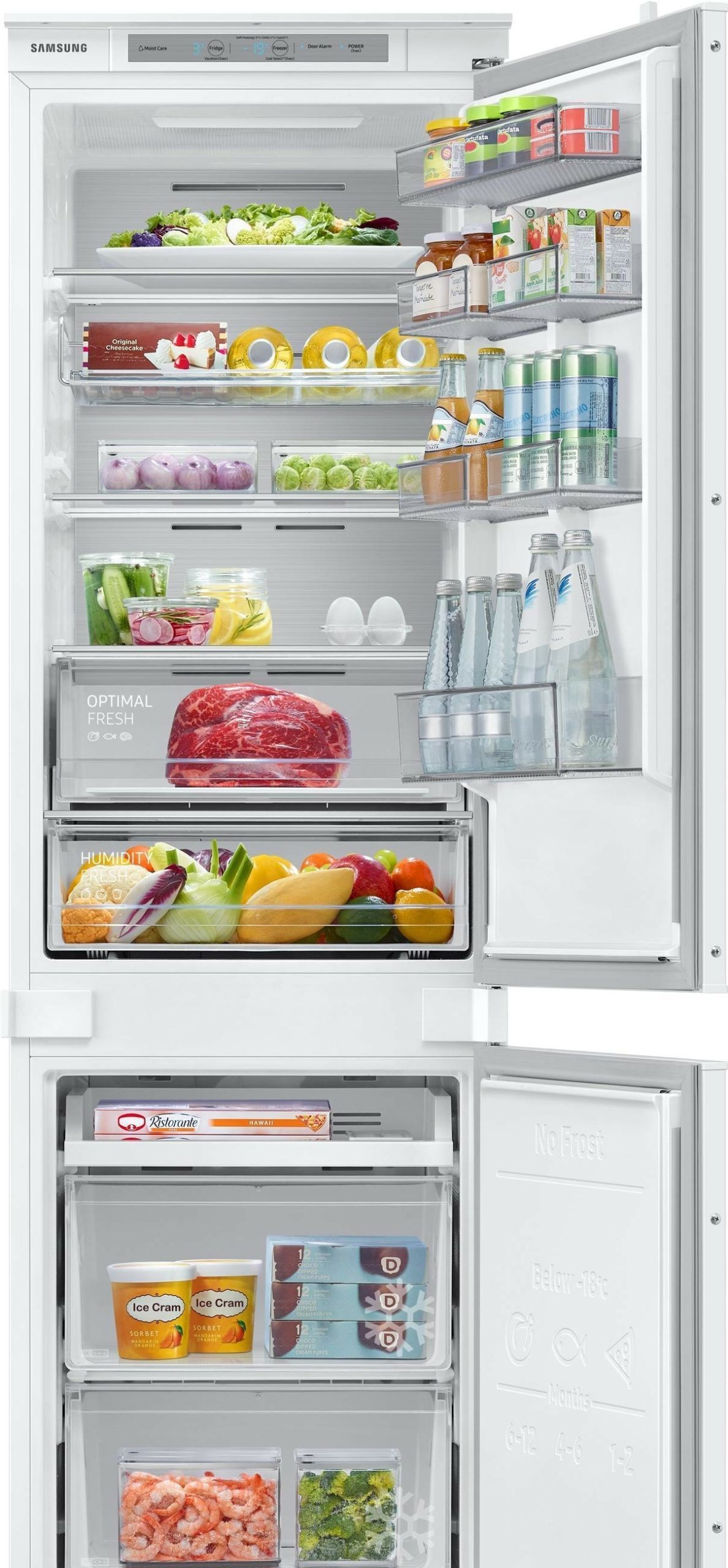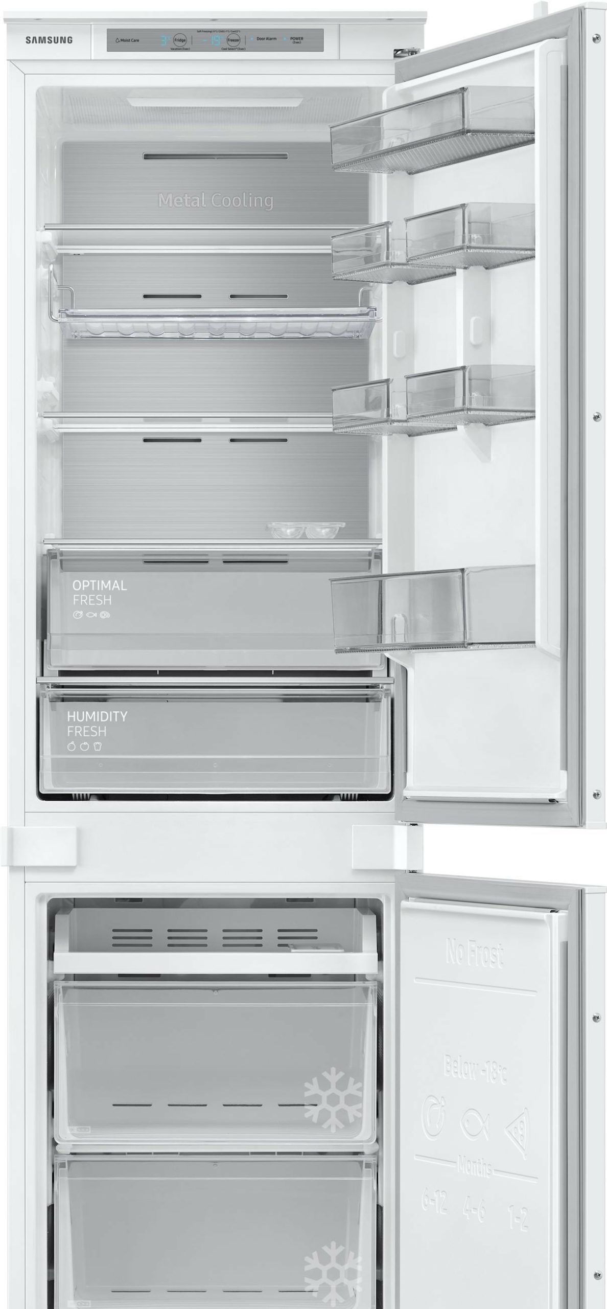 полный No Frost, электронное управление, класс A+, полезный объём: 261 л (189 + 72 л), инверторный компрессор, зона свежести, 54x55x177.5 см, белый