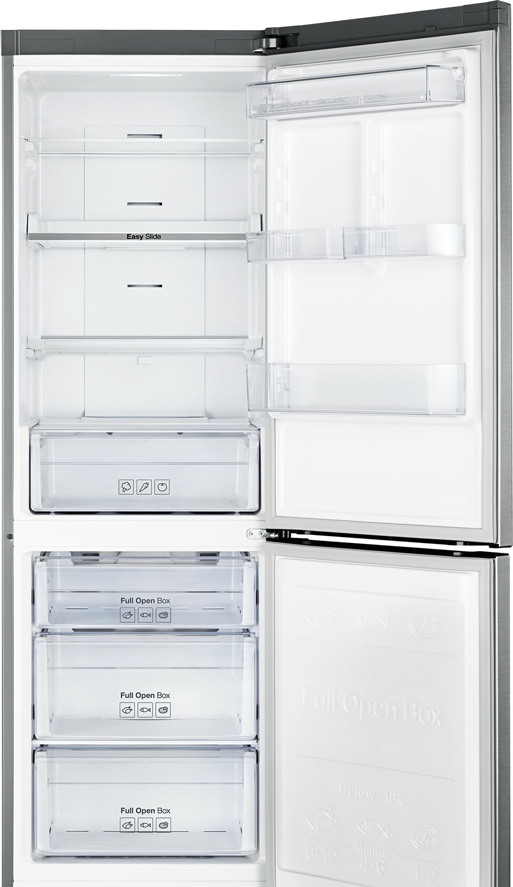 отдельностоящий, без No Frost, электронное управление, класс A+, полезный объём: 324 л (205 + 119 л), зона свежести, перенавешиваемые двери, полка для вина, лоток для яиц, 59.5x62.9x186.8 см, темная сталь