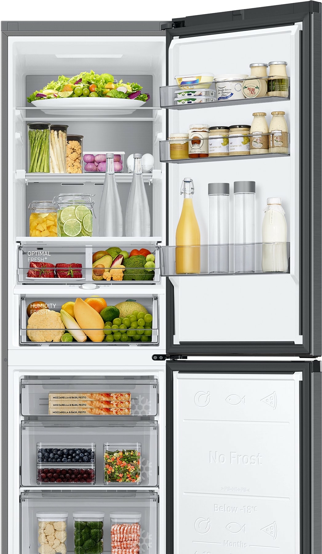 полный No Frost, электронное управление, класс A++, полезный объём: 360 л (248 + 112 л), зона свежести, 59.5x65.8x193.5 см, черный