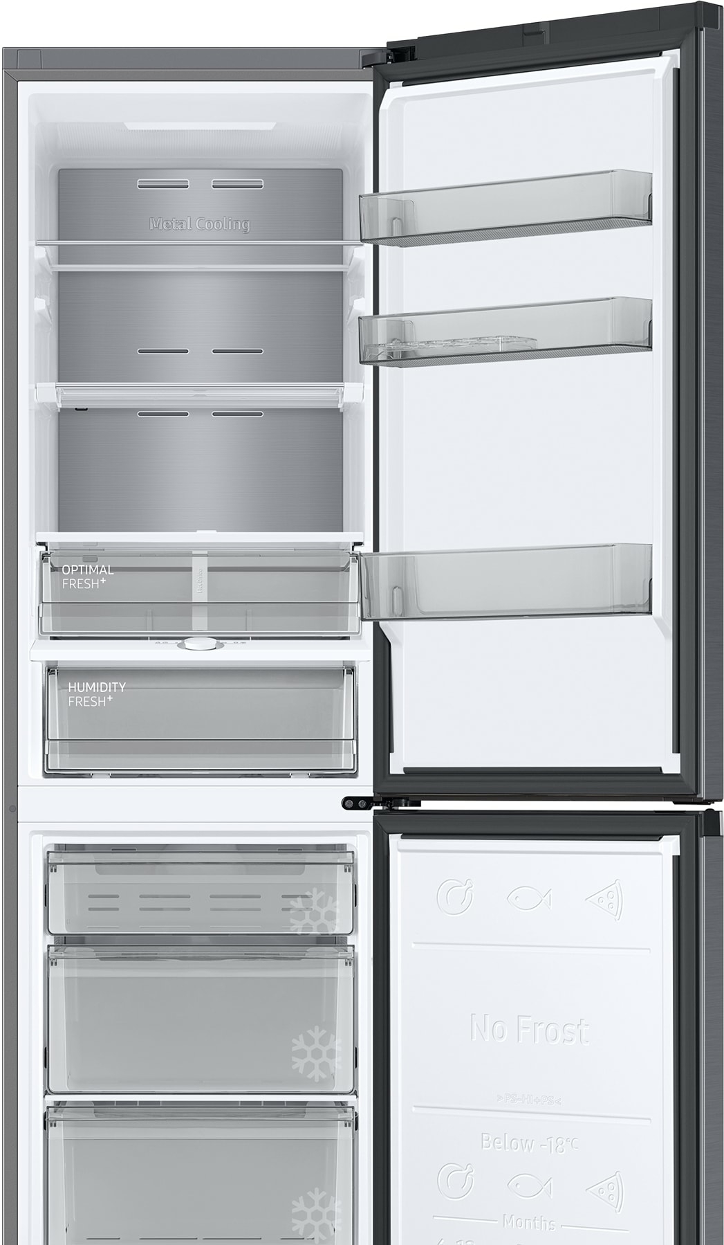 отдельностоящий, без No Frost, электронное управление, класс A+, полезный объём: 324 л (205 + 119 л), зона свежести, перенавешиваемые двери, полка для вина, лоток для яиц, 59.5x62.9x186.8 см, темная сталь