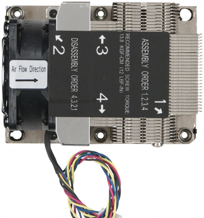 для процессора, 2U, воздушное охлаждение, рассеивание до 205 Вт, шум 52 дБ, вентилятор 60 мм, скорость 0-8400 об/мин, PWM