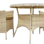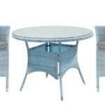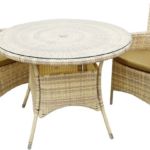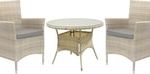 стол + 2 кресла, стол: 1000×1000×710 мм, основание - искусственный ротанг/алюминий, столешница - стекло; сиденье: 610×630 мм, материал: искусственный ротанг
