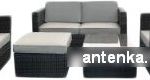 диван + 2 кресла + столик + пуфик, стол: 650×650×300 мм, основание - искусственный ротанг/сталь, столешница - стекло; сиденье: 840×740 мм, материал: искусственный ротанг