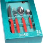 набор столовых приборов, 24 прибора на 6 персон: вилка столовая/ложка столовая/ложка чайная/нож столовый, рабочая часть: нержавеющая сталь, ручка: пластик, пригодность для посудомойки, коробка для хранения в комплекте