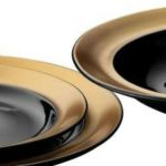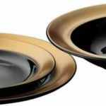 набор тарелок, фарфор, 3 предмет для 1 персона, обеденная тарелка/суповая тарелка/десертная тарелка, золотистый/черный