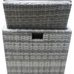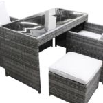 стол + 2 кресла, стол: 1200×620×730 мм, основание - искусственный ротанг, столешница - стекло; сиденье: 410×550 мм