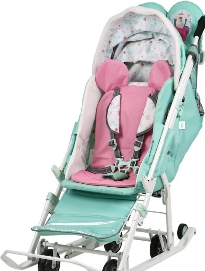 Санки-коляска Nika Disney baby 2 (Минни Маус/мятный)