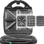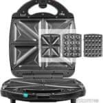 мультипекарь, 1400 Вт, поверхность: форма для 4 ломтиков хлеба/орешница, съемные плитки, черный/серебристый