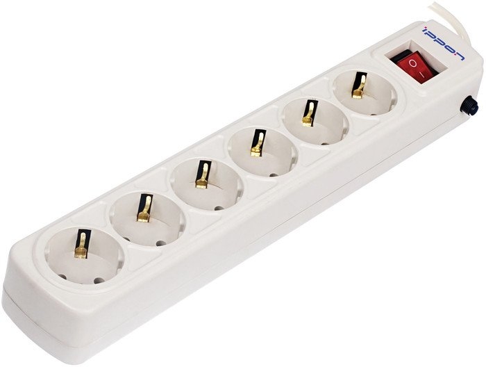 Сетевой фильтр IPPON 6 розеток, белый, 1,8 м (BK-112)
