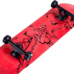 скейтборд, клен канадский, размер деки: 31.7x8.13", до 100 кг, подшипник: ABEC 7, красный/черный/цветной принт