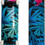скейтборд, клен канадский, размер деки: 31.1x7.9", до 100 кг, подшипник: ABEC 9, розовый/синий/цветной принт