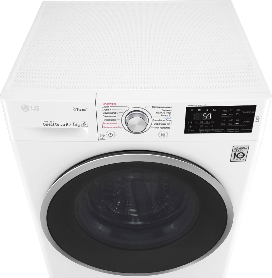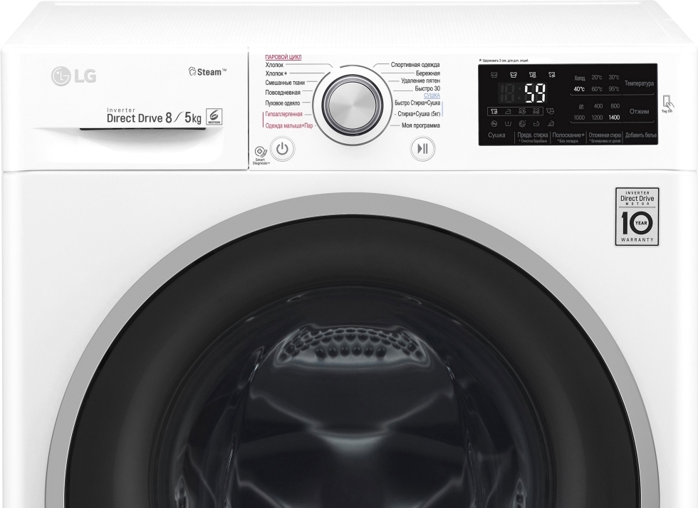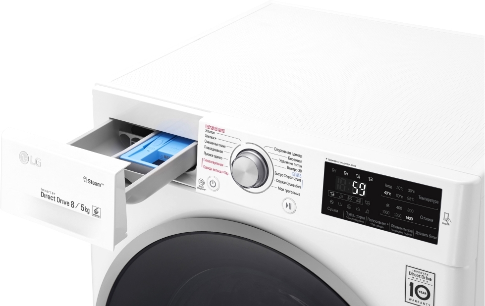 | Все программы: | • Хлопок; • Хлопок+; • Смешанные ткани; • Повседневная; • Пуховое одеяло; • Гиполлергенная (стирка с паром); • Одежда малыша (стирка с паром); • Бережная; • Удаление пятен; • Быстро Стирка+Сушка • Стирка+Сушка (5 кг) • Спортивная одежда; • Быстро 30; • Мо |