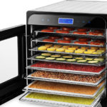 | Комплектация: | 8 пластиковых сетчатых поддонов для сушки небольших продуктов (травы и ягоды) 8 металлических сетчатых поддонов для сушки фруктов, овощей, мяса 8 пластиковых сплошных поддонов для сушки водянистых продуктов и пастилы |
