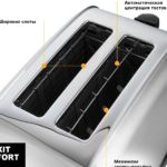850 Вт, количество тостов: 2, корпус: пластик/металл, 7 степеней обжаривания, цвет серебристый