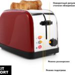 850 Вт, количество тостов: 2, корпус: пластик/металл, 7 степеней обжаривания, цвет красный