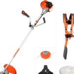 бензиновый, оснастка: леска+металлический нож+металлический диск, ширина скашивания 25.5-42 см, вес 9.2 кг